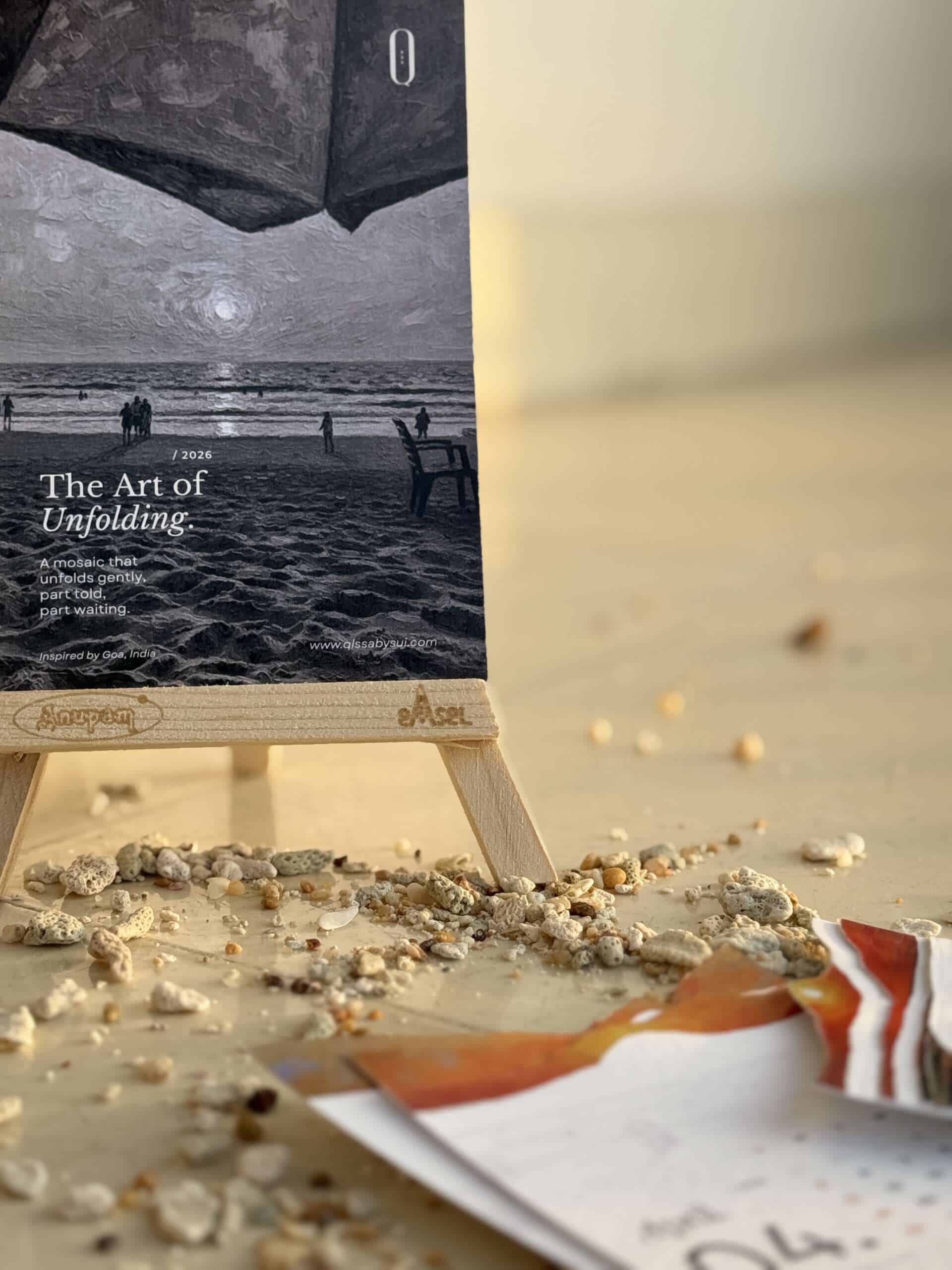 Rooted in the philosophy of The Mosaic Self (Inspired by Goa, India), this calendar is a reminder that you don’t need to rush becoming whole. Layer by layer is enough.